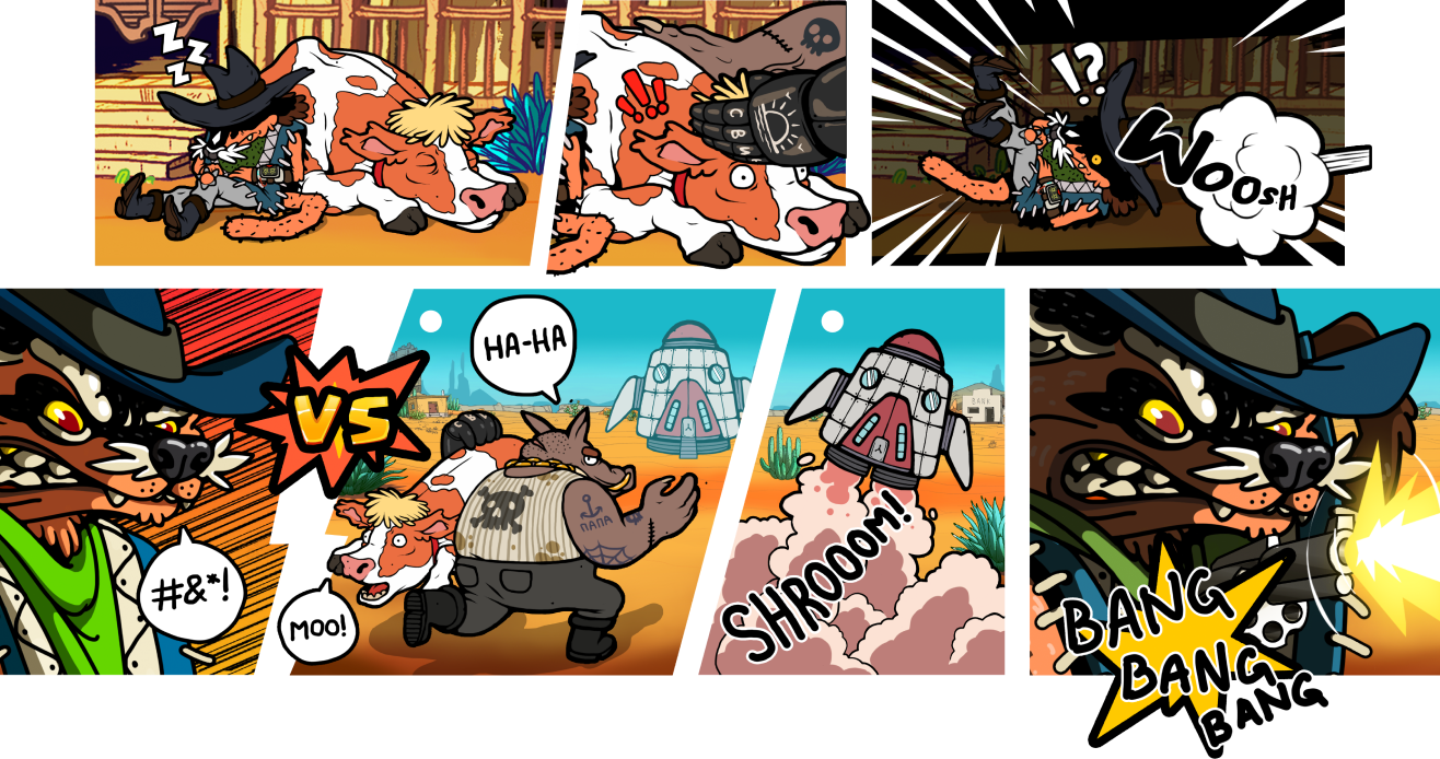 A cowboy who goes on a galactic adventure to get his cow back and teach Papa Borrof a lesson.